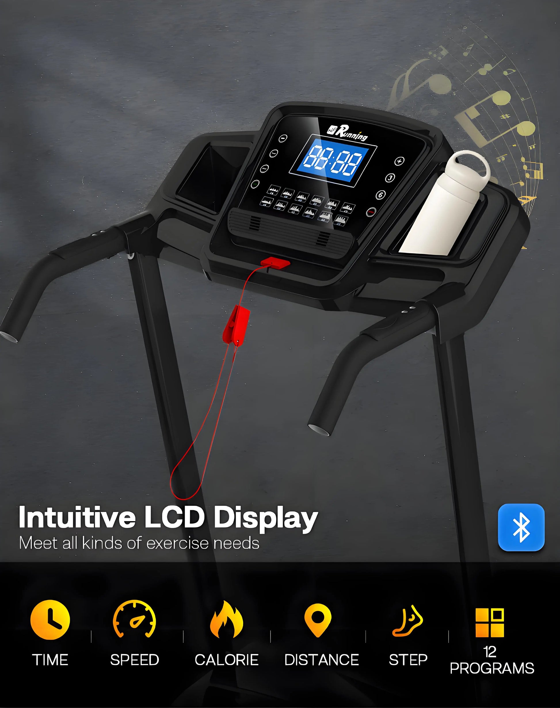 Foldable Electric Treadmill with Incline - 3.5HP Motor, Handrail Speed Control, Pulse Monitor, 12 Training Programs, Max 330lbs